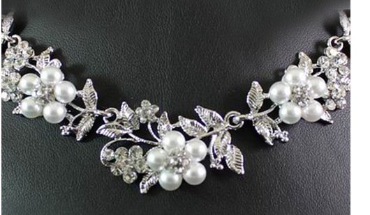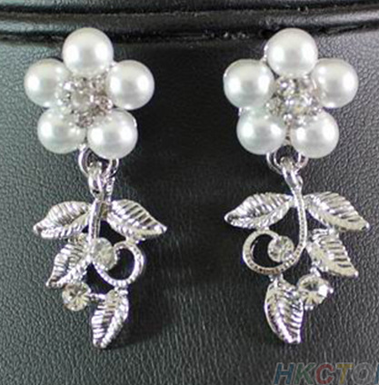 Alloy bridal sleeve chain, leaf pearl necklace, earring, Korean wedding dress, two piece set, pearl leaf set chain