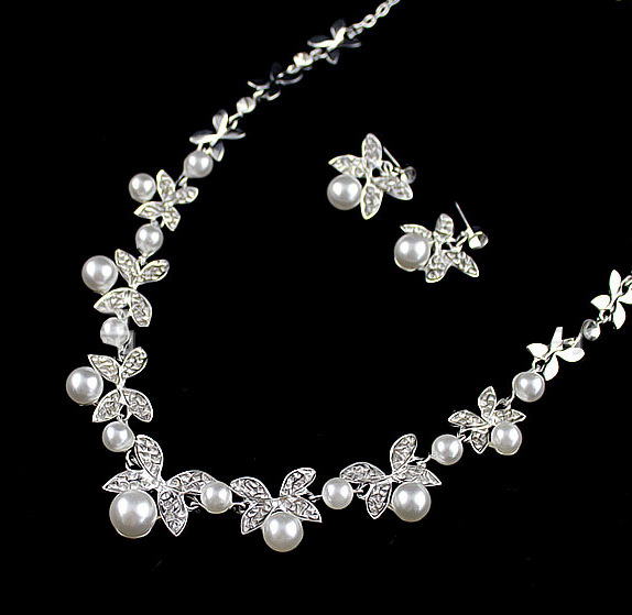 B0879 bride wedding jewelry accessories wholesale fashion diamond pearl necklace earrings set leaves the atmosphere quantity