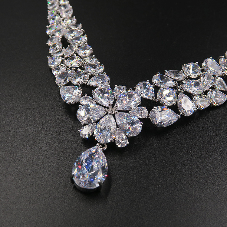 High-grade Jewelry Suit Micro Inlaid Zircon Sunflower Ear Stud Necklace A Set Of Elegant Jewelry
