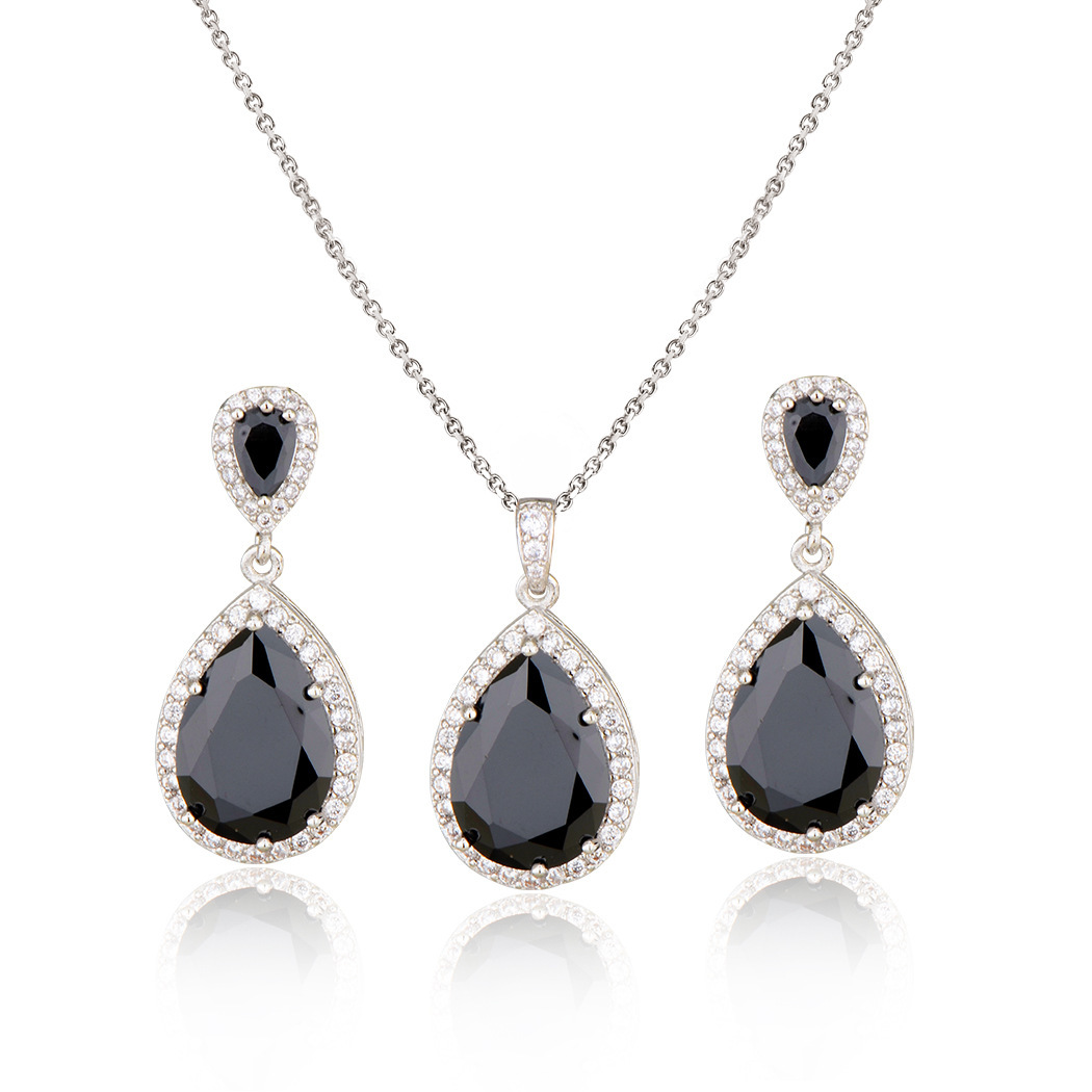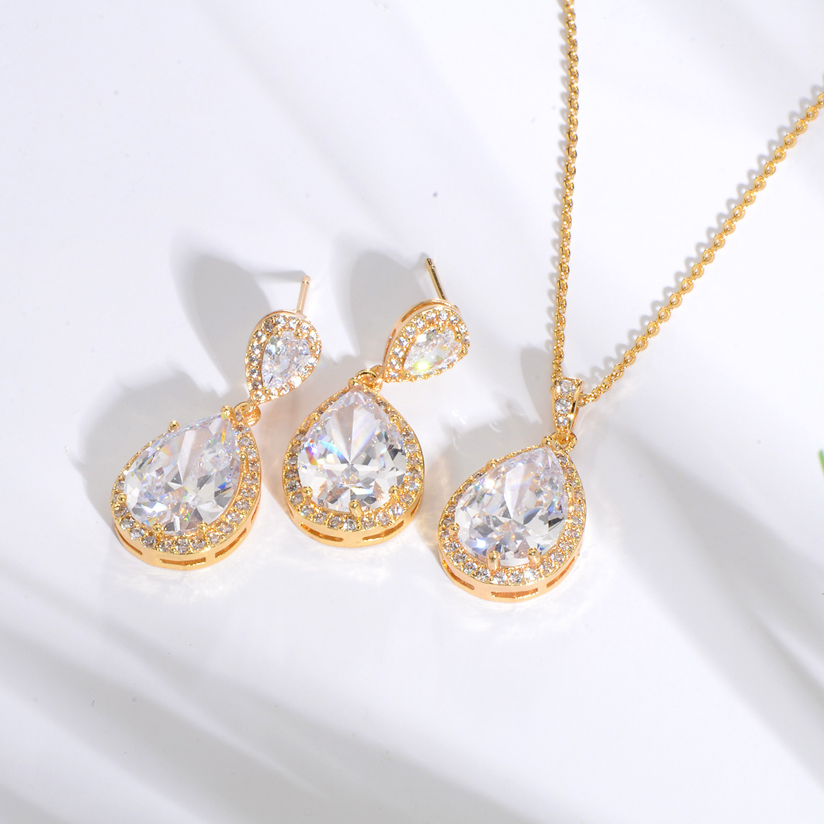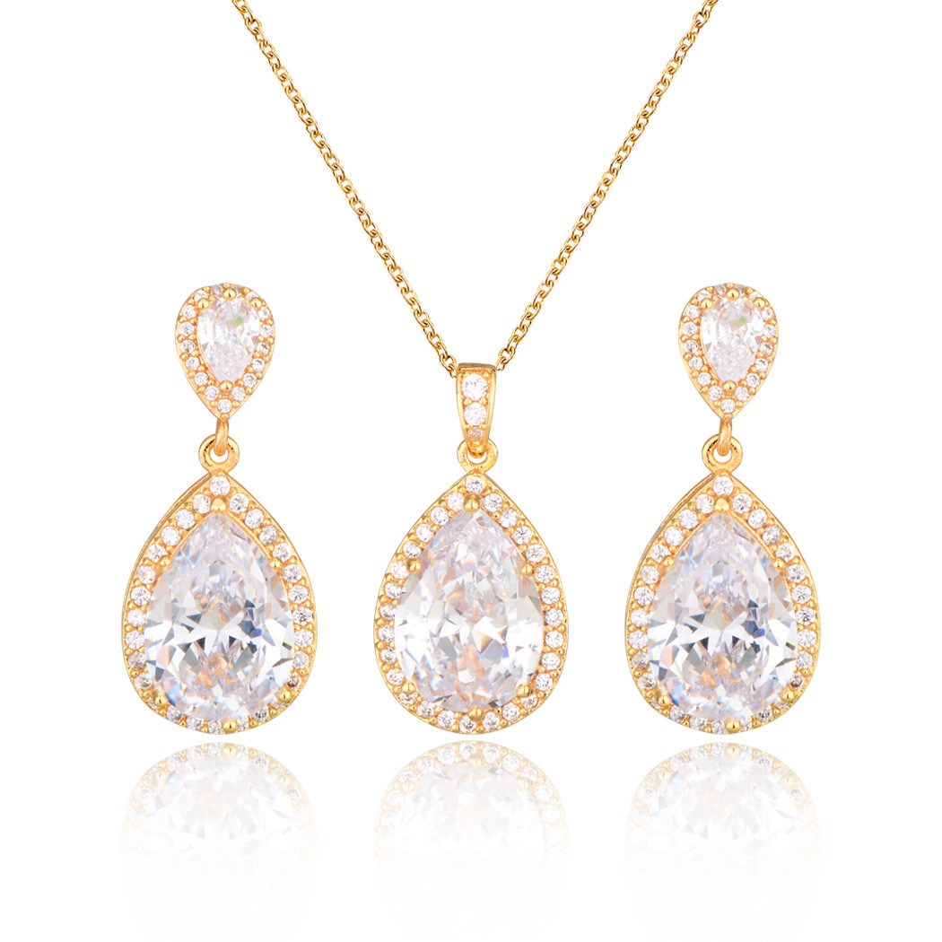Bright Big Zircon Water Drops Necklace Eardrops Suit Bride Wedding Jewelry Simple Graceful