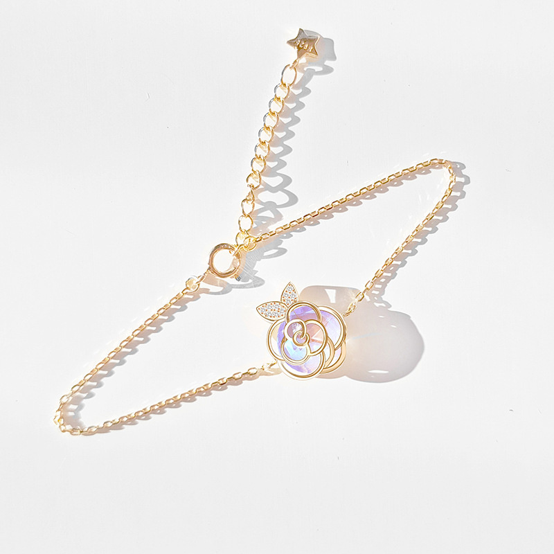 Color: Camellia necklace-white gold color, Camellia necklace-champagne gold, Camellia bracelet-white gold color, Camellia bracelet-champagne gold