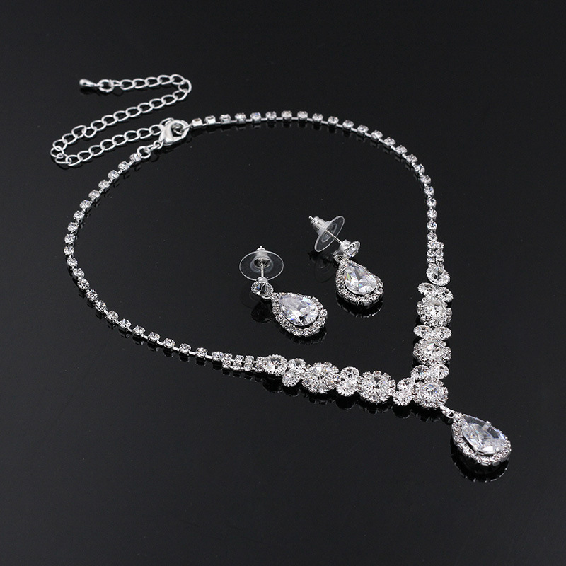 Europe and America popular sets of chain drops sparkling, luxury zircon necklace, Earrings 2 sets of beautiful bridal suite quantity
