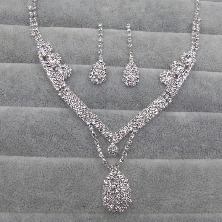 Europe And The United States Foreign Trade Drill Water Drop Shape Bridal Necklace, Earrings Set Wedding Jewelry Wedding Accessories Wholesale quantity