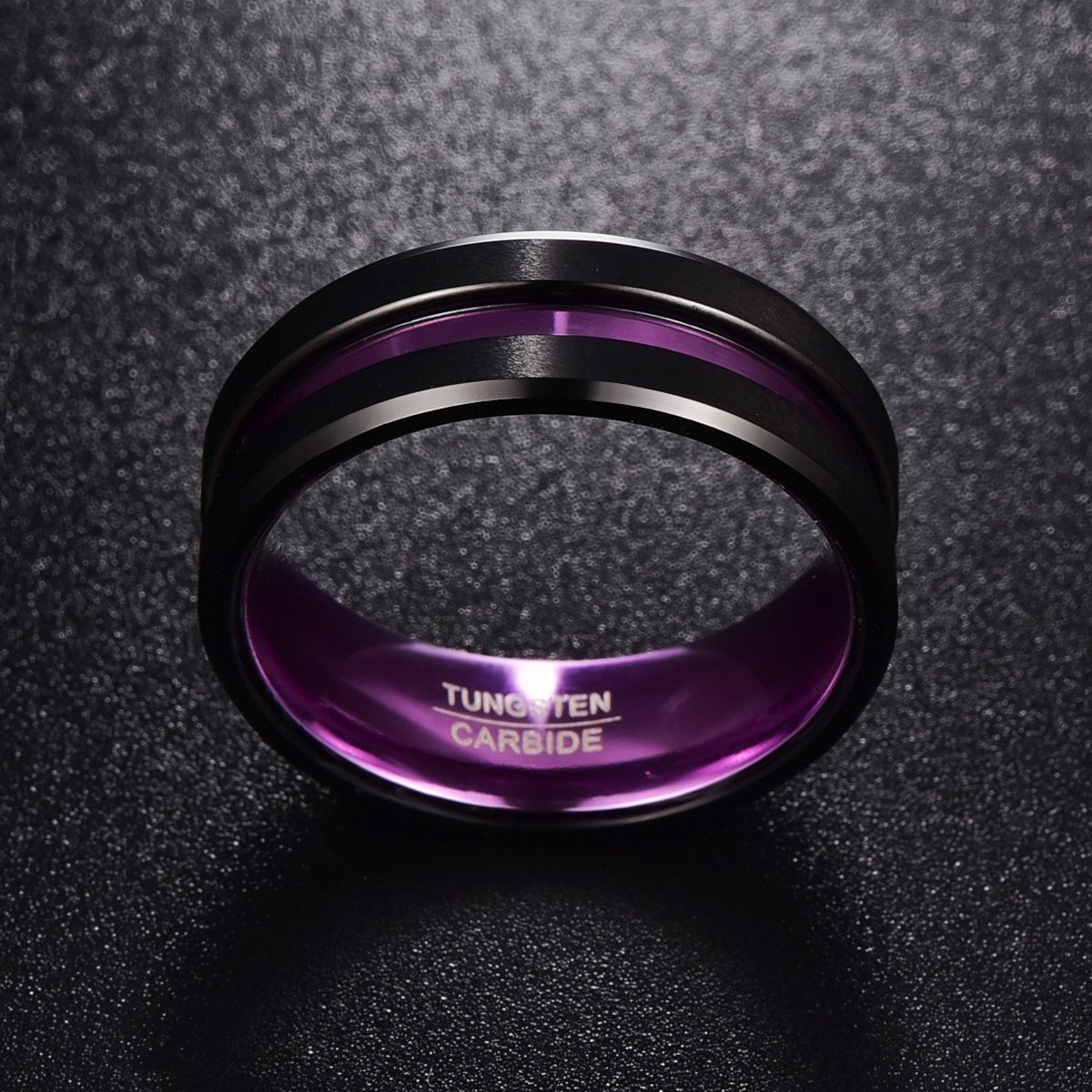 Purple inner ring frosted groove men’s ring tungsten carbide