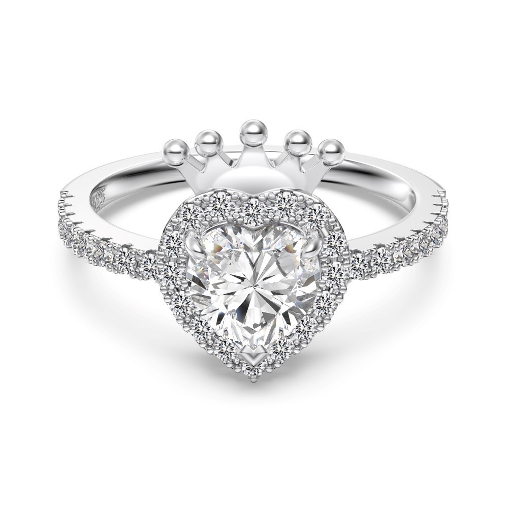 S925 Sterling Silver Crown And Heart Ring For Women