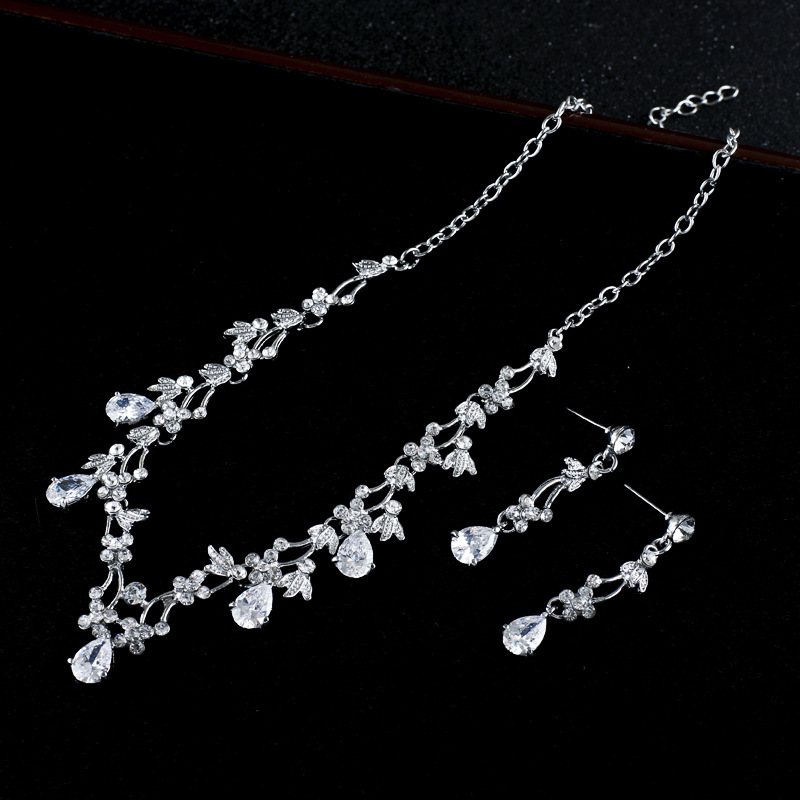 Simple Zircon Necklace Earrings Korean Bride Wedding Necklace set dinner party dress jewelry accessories quantity