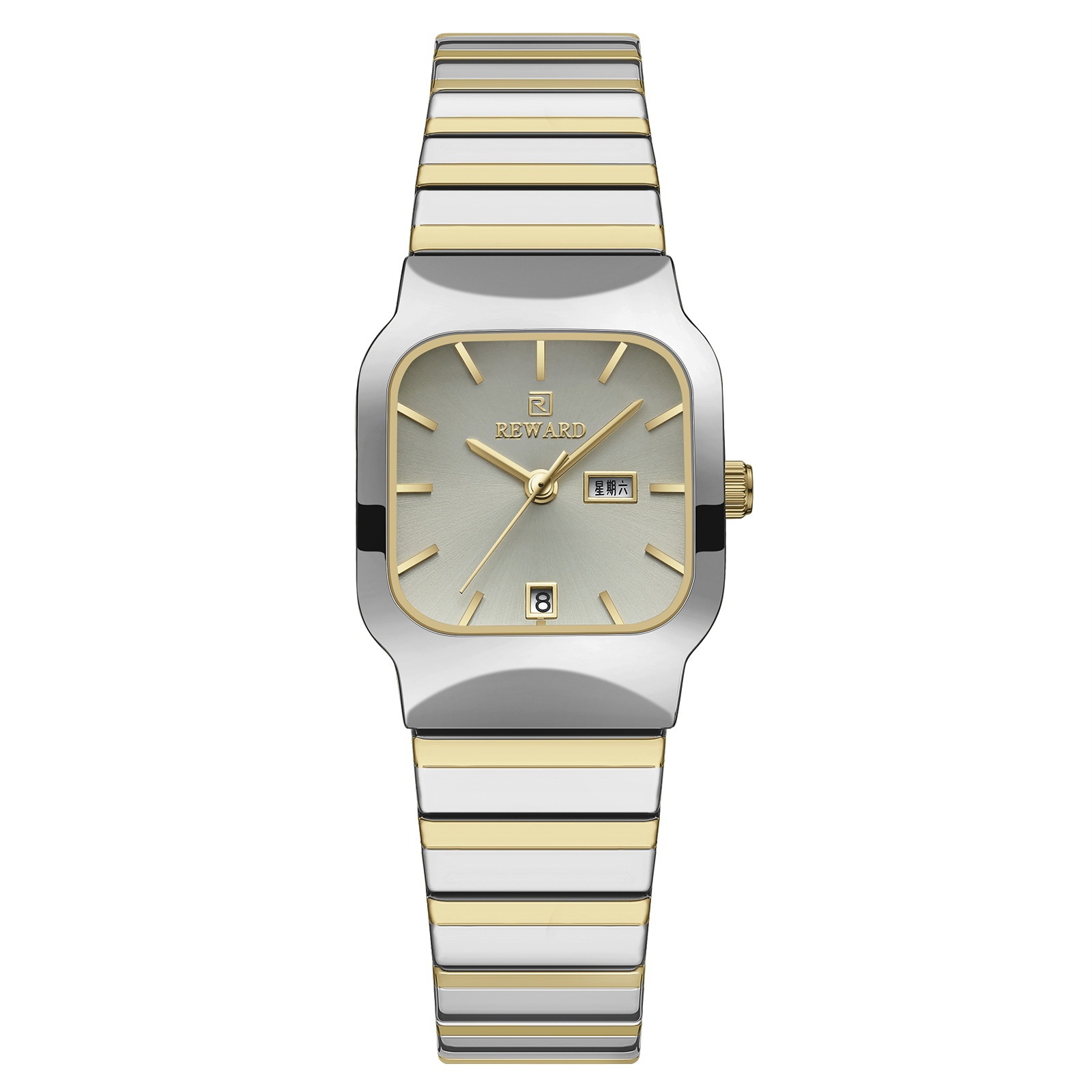 Color: M gold shell gray surface gold watchband, M gold shell gold surface gold watchband, M Silver Case Blue surface silver stripes, L gold shell white surface gold watchband, L gold case gold surface gold strap, L Silver Case Blue surface silver stripes