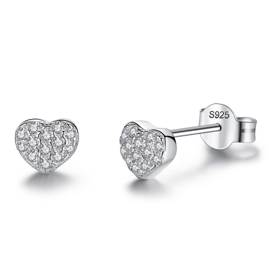 Sterling Silver Heart-Shaped Earrings S925 Sterling Silver Zircon