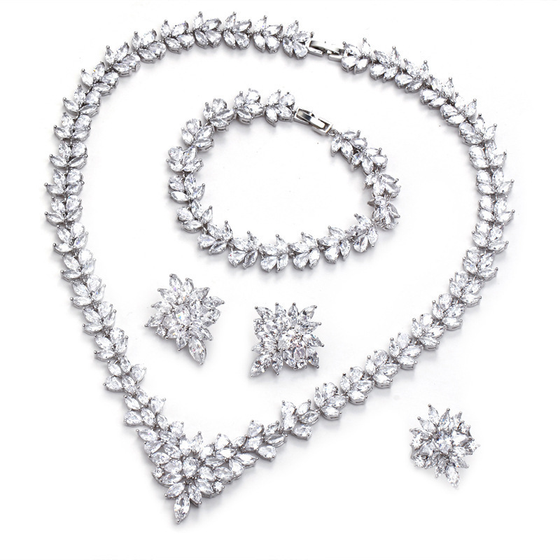 The Dazzling Set Is Handcrafted With Copper And Set With Zircon Stones.