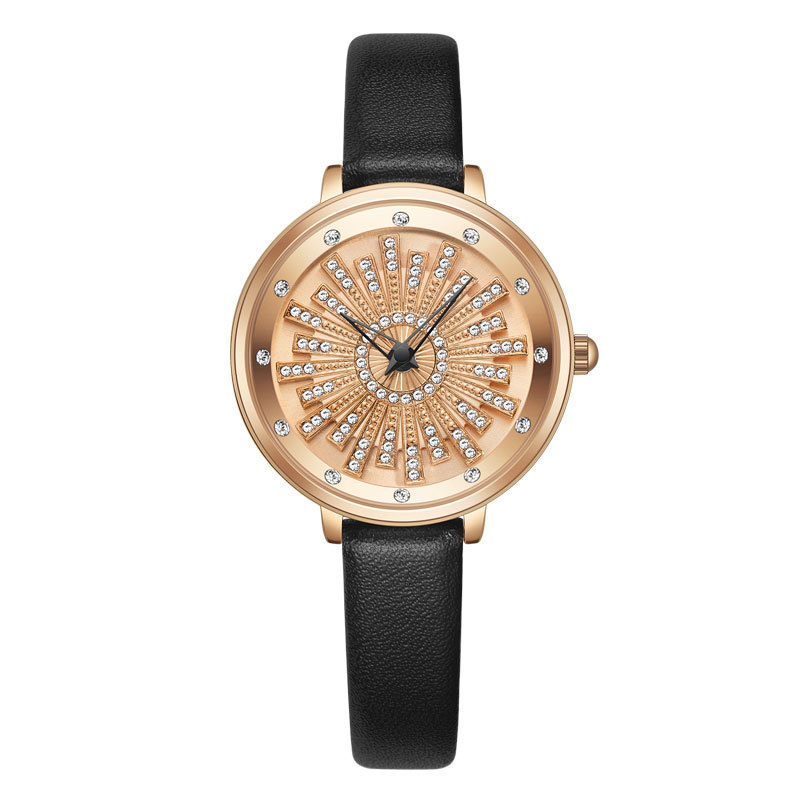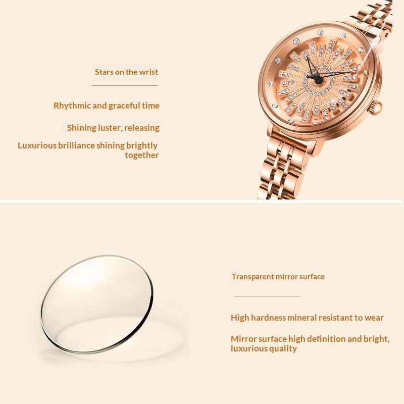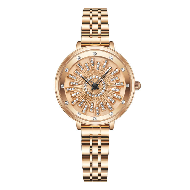 Color: Rose gold solid steel band 1, rose gold dial genuine leather strap 2